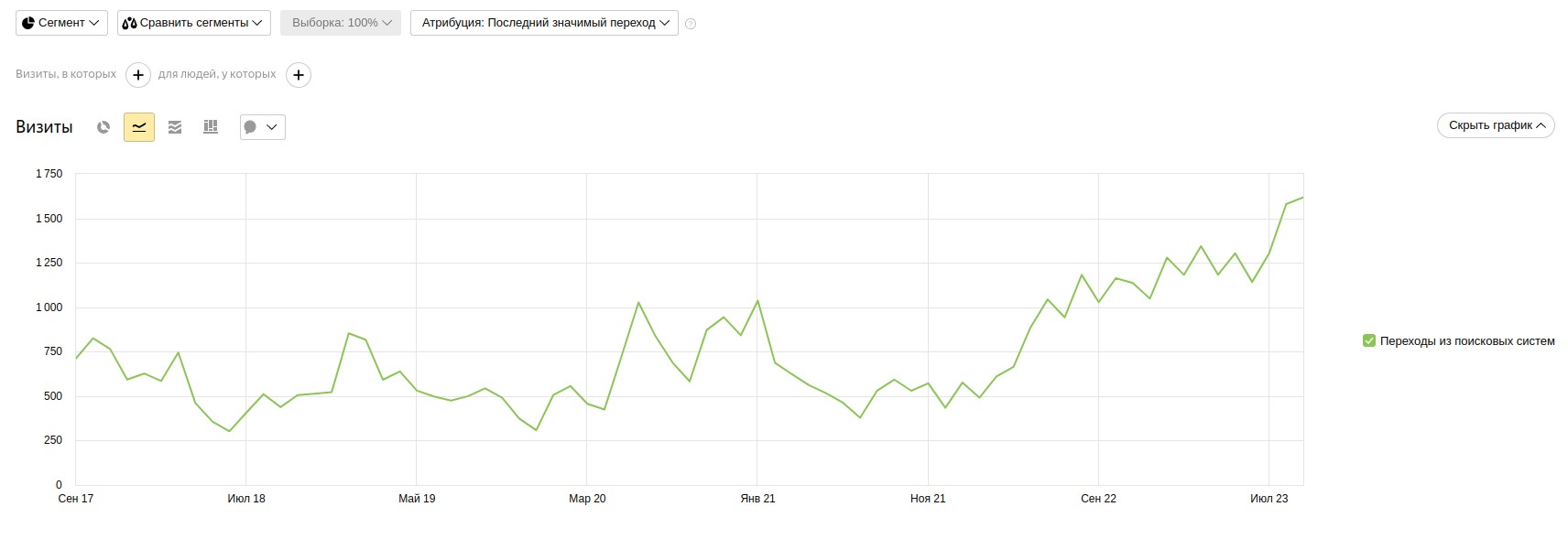 Работа с сайтом началась с тщательного анализа текущего состояния и устранения наиболее критичных ошибок и проблем. Затем мы провели обширный анализ ключевых слов и запросов, связанных с мебелью и дизайном интерьера. Собранное и кластеризованное семантическое ядро содержит более 10 000 запросов, что позволило нам точно определить наиболее целевые ключевые фразы для продвижения. Далее были разработаны ТЗ и по итогу созданы более 150 уникальных посадочных страниц, оптимизированных для поисковых запросов из семантического ядра. Контент включает в себя тексты, изображения и другие элементы, которые призваны привлечь внимание и удержать посетителей на сайте.