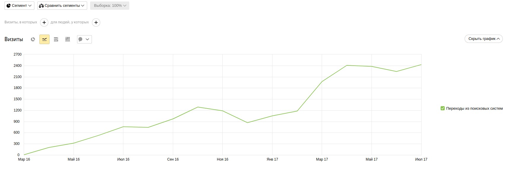- Практически нулевые позиции и посещаемость.
